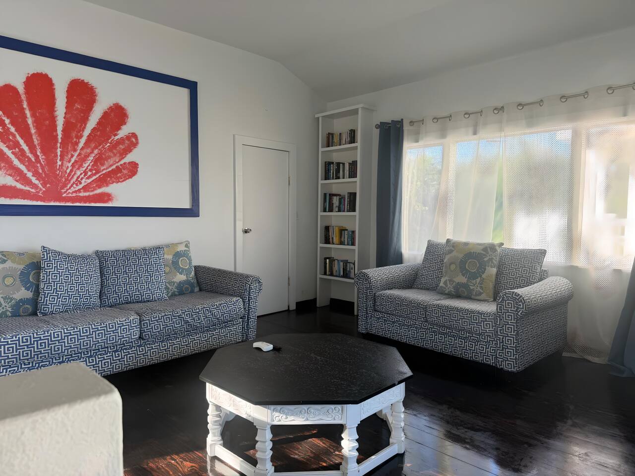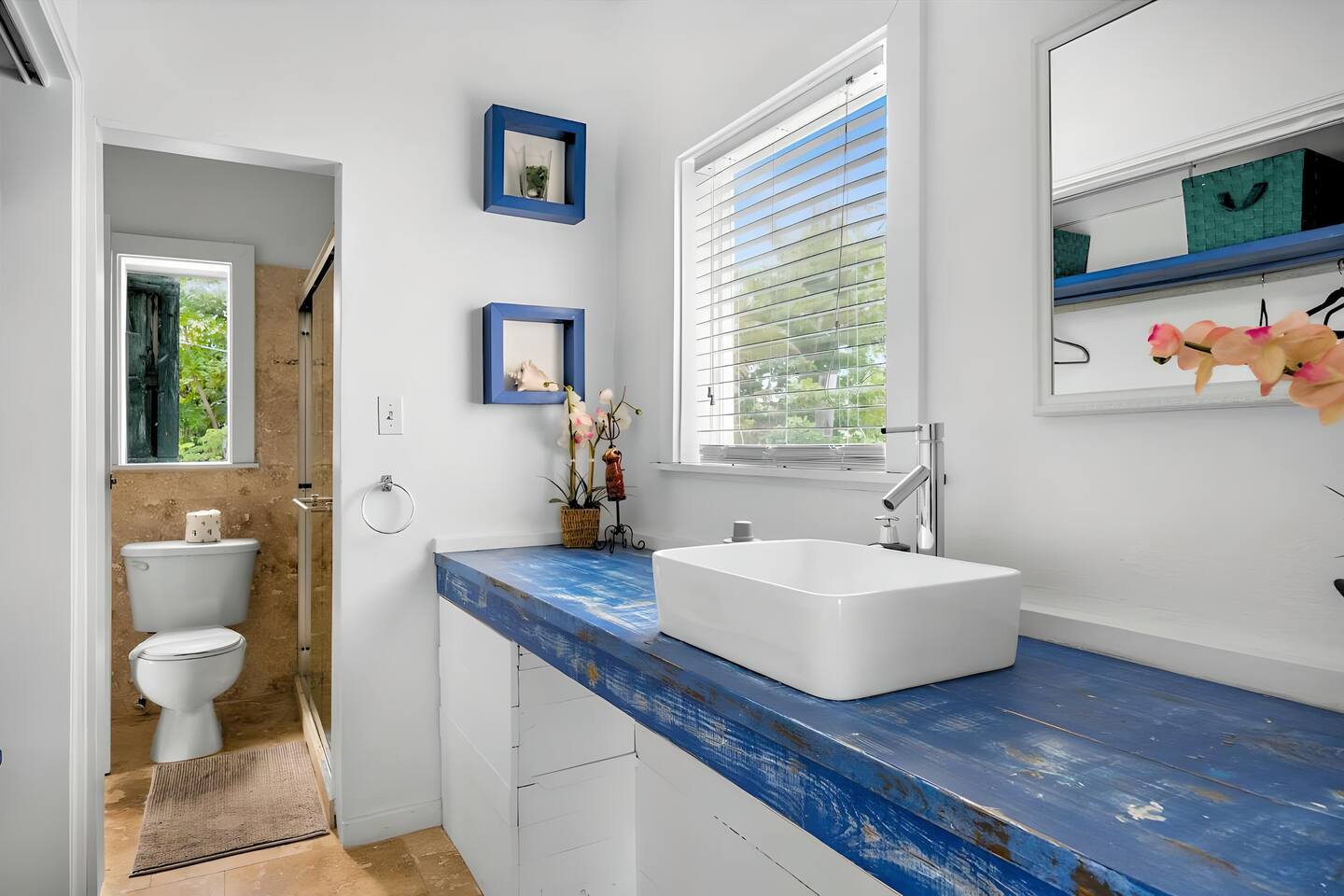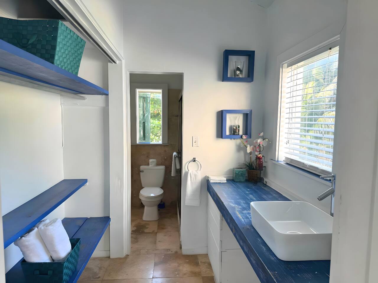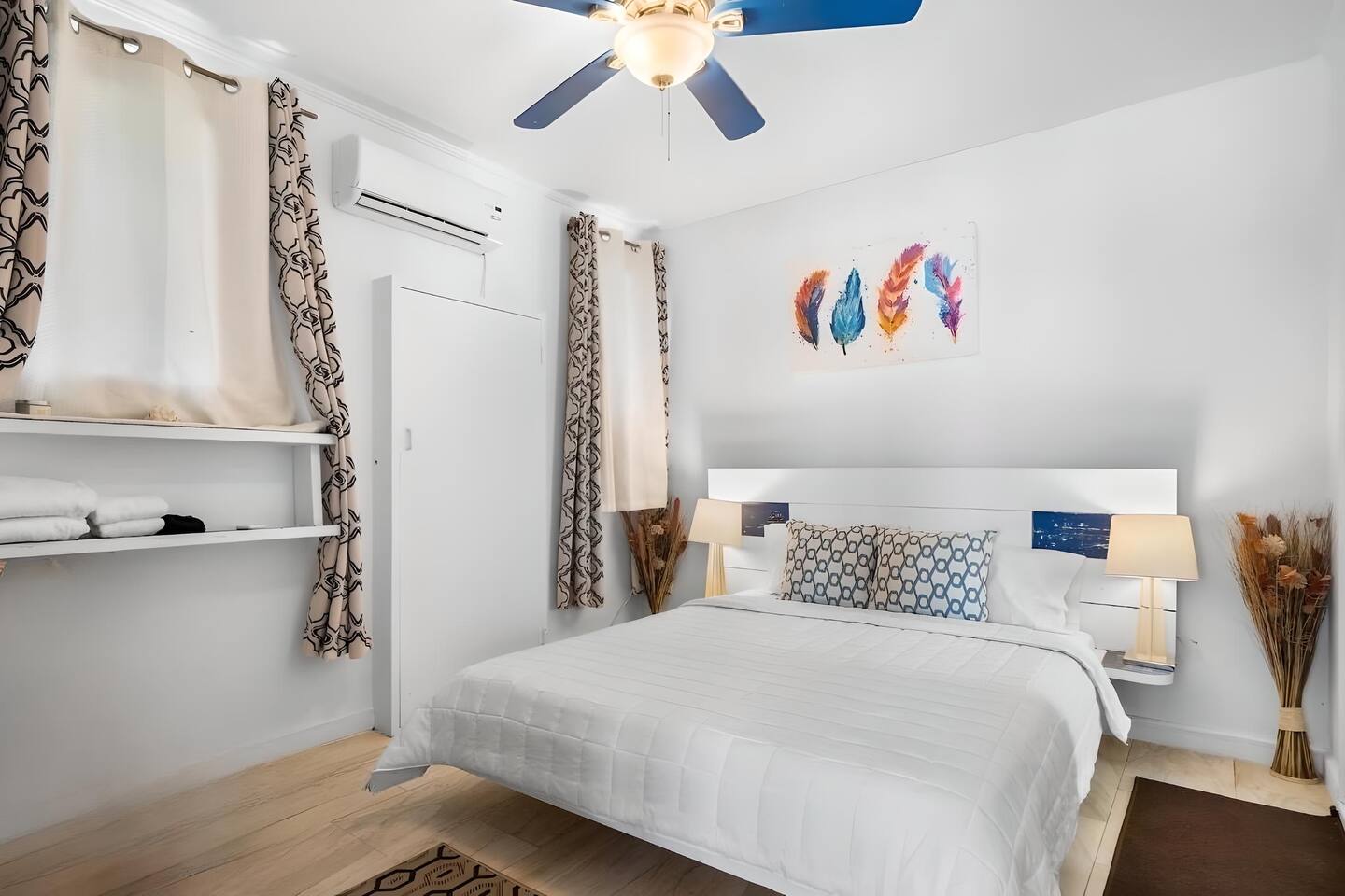 Step inside to discover a delightful mix of vintage character and modern comfort. Our 2-story bungalow features: • Two Queen Bedrooms: Each bedroom is designed for relaxation, with Queen-size beds, soft linens, and lovely beachy decor. The bedrooms are split between both floors each with their own ensuite bathroom, giving additional privacy and comfort. • Open Living Area: The heart of the bungalow, where you can unwind in a cozy living room with comfortable seating and a view of the ocean. The space is perfect for lounging, reading, or simply soaking in the beach vibes. • Kitchen with a View: Cook up your favorite meals in our well-equipped kitchen. Whether you're making a quick breakfast or a gourmet dinner, you'll find all the essentials here. • Charming Outdoor Space: Step outside to your own private beach access and enjoy the serene beauty of the Nassau coastline. There is a patio on both floors which are perfect for morning coffee, evening sunsets, or simply relaxing with the sound of the waves in the background. Location: Our bungalow is situated in a peaceful, picturesque part of Nassau, yet it's close to local attractions, restaurants, and shops. Experience the best of both worlds – a tranquil retreat with easy access to everything Nassau has to offer. Additional Amenities: • Air conditioning and ceiling fans throughout • High-speed Wi-Fi • Smart TV with streaming services • Washer and dryer • Beach towels • Outdoor seating • Internal security system and outdoor security cameras • Private parking